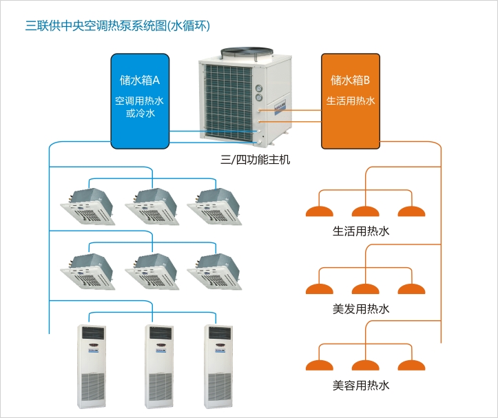 采暖、制冷的同時(shí)均可以實(shí)現(xiàn)全年熱水的供應(yīng)。