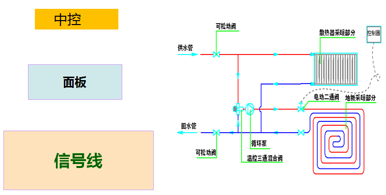 蓄能水箱、水力分配、循環(huán)泵、電動(dòng)閥、水路布置形式(采用同程、異程還是分級(jí)分水形式)。